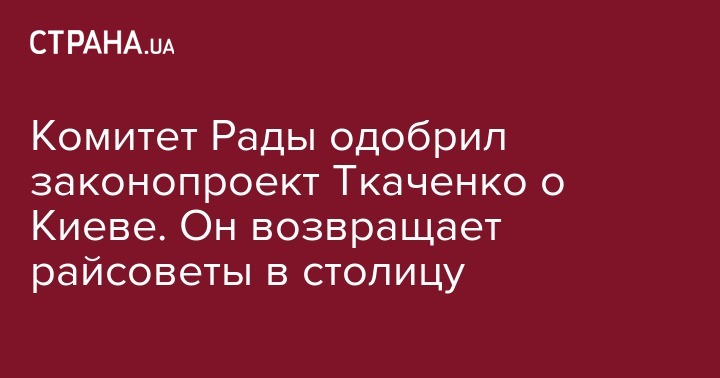 Во вторник, 1 октября Комитет Верховной Рады по вопросам организации государственной власти, местного самоуправления, регионального развития поддержал законопроект "Про город Киев - столицу Украины" (№2143-3), предложенный депутатами от "Слуги народа". Об этом сообщает "Интерфакс-Украина".