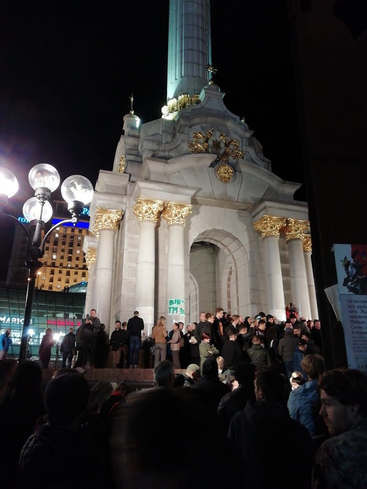 Около двух сотен активистов вечером 1 октября пикетировали Офис президента. Среди участников акции были представители партии Святослава Вакарчука "Голос", "Нацкорпуса", "Нацдружин" и ВО "Свобода".