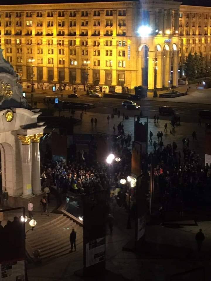 При этом акции, что на Майдане, что под Офисом Порошенко вышли пока очень немногочисленными. Вот картинка, которая показывает, сколько на самом деле человек вышло на главную площадь страны.
