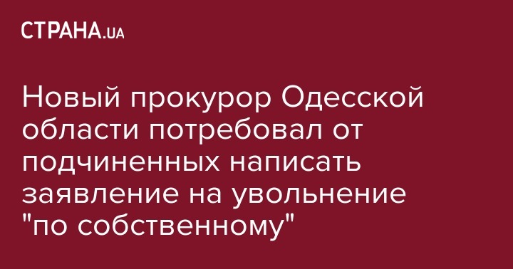 По информации источников "Страны" в одесской прокуратуре, новый начальник начал работу с того, что собрал ключевых сотрудников ведомства и потребовал от них написать заявления об увольнении "по собственному желанию".