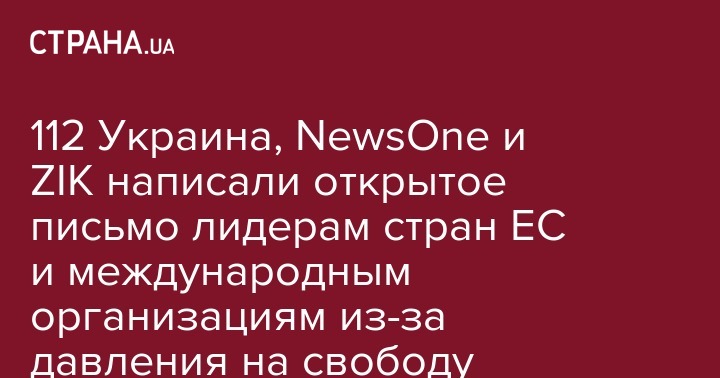 Телеканалы "112 Украина", NewsOne и ZIK обратились с открытым письмом к лидерам стран Европейского Союза, главам руководящих органов ЕС и руководителям профильных международных организаций в связи с давлением на свободу слова в Украине.