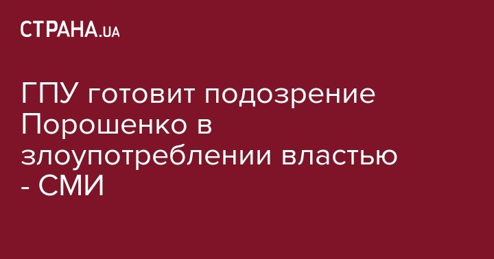 Генеральная прокуратура Украины готовит подозрение экс-президенту Петру Порошенко по статье о злоупотреблении властью. Об этом сообщает Интерфакс-Украина со ссылкой на источник в ГПУ.