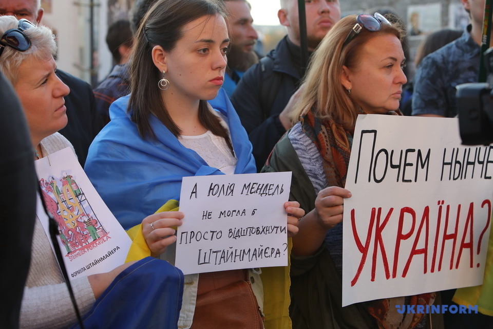 В среду, 2 сентября, в крупных городах Украины прошли акции против согласования формулы Штайнмайера. Сотни людей вышли на центральные площади Харькова, Запорожья, Днепра, Кривого Рога, Черновцов и Одессы, передает Укринформ.