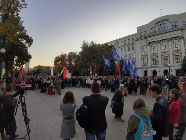 Как сообщается, активисты собрались в Харькове на площади Свободы около палатки "Все для победы". На акцию собрались представители националистических организаций "Национальные дружины", "Традиции и порядок", "Союз ветеранов АТО", партий "Национальный корпус" и "Демократична сокира", ВО "Свобода".