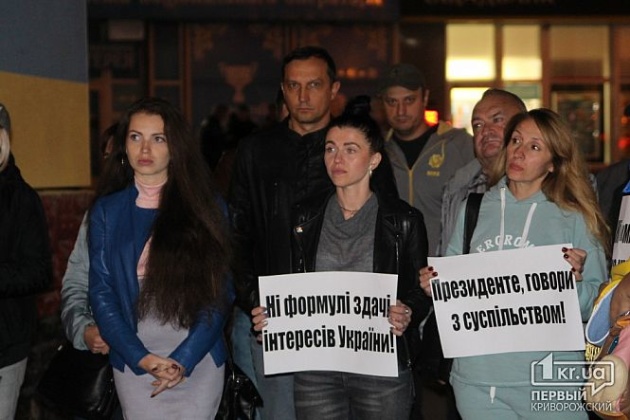 "Требуем обнародовать документ, который был подписан - так называемую "формулу Штайнмайера". Требуем обнародовать стенограммы разговоров Зеленского с Путиным. Мы должны услышать о чем они договаривались. Владимир Зеленский обещал проводить путем референдума каждое свое движение, но сейчас у народа никто ничего не спрашивал . Также мы требуем приостановить отвод войск", - зачитала требования митингующих волонтер Надежда Мороз.