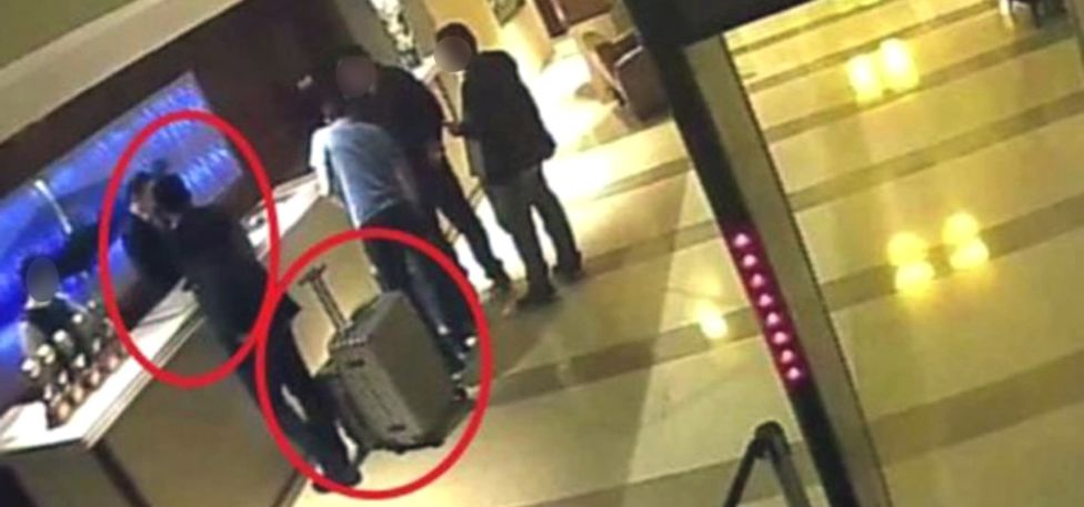Группа, прибывшая из Саудовской Аравии, заселяется в стамбульский отель Mövenpick (кадр с установленной в холле камеры видеонаблюдения). Фото: Reuters