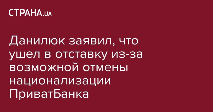 Ранее Данилюк заявил, что покинул свою должность по собственной инициативе, так как не хочет участвовать в "подковерных играх".
