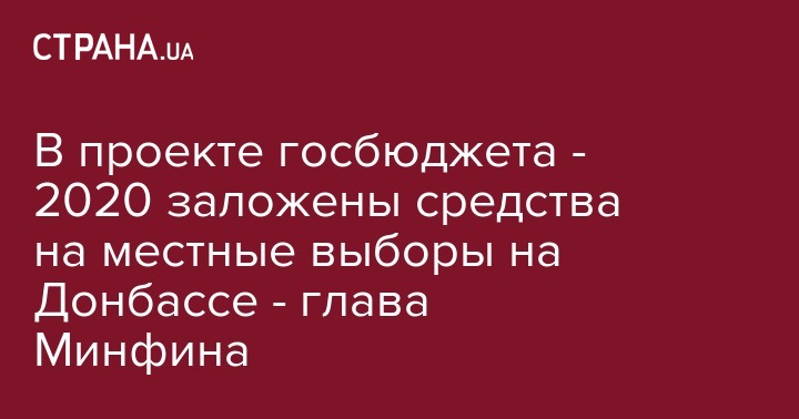 В проекте госбюджета - 2020 заложены средства на местные выборы на Донбассе - глава Минфина