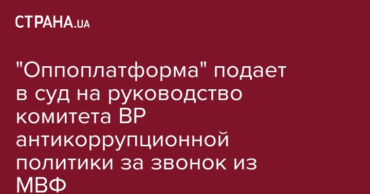 "Оппоплатформа" подает в суд на руководство комитета ВР антикоррупционной политики за звонок из МВФ