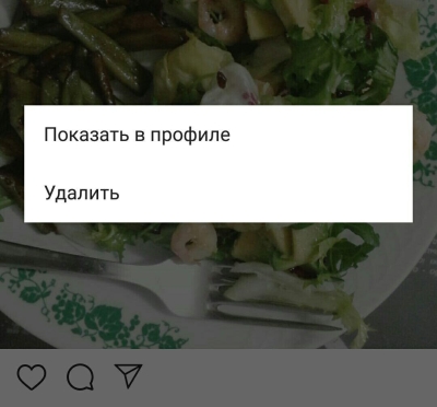 Вернуть публикацию на прежнее место тоже просто. Заходим в архив, открываем фото и, нажав три точки вверху справа, выбираем пункт "Показать в профиле". Публикация вернется на прежнее место.