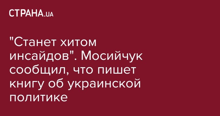 "Станет хитом инсайдов". Мосийчук сообщил, что пишет книгу об украинской политике