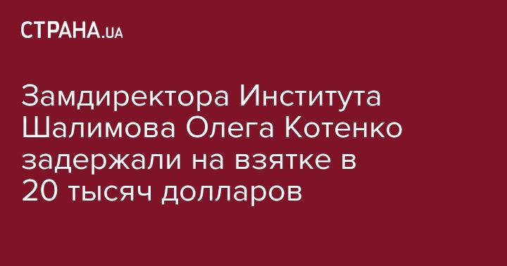 В четверг, 3 октября руководителя отдела трансплантации и хирургии печени Национального института хирургии и трансплантологии им. О.О. Шалимова Олега Котенко задержали при получении взятки. Об этом в Facebook сообщил советник министра здравоохранения Дмитрий Раимов.