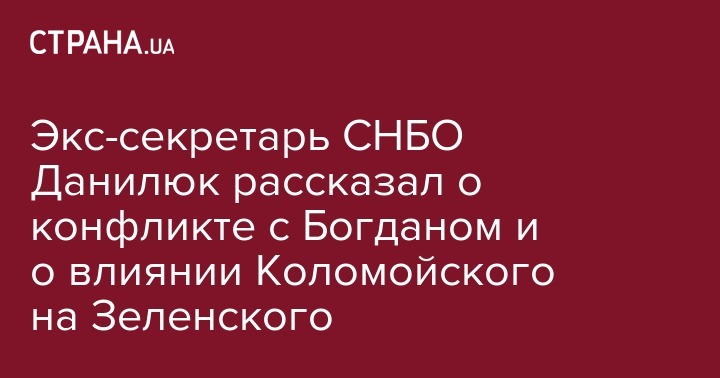 Экс-секретарь СНБО Данилюк рассказал о конфликте с Богданом и о влиянии Коломойского на Зеленского