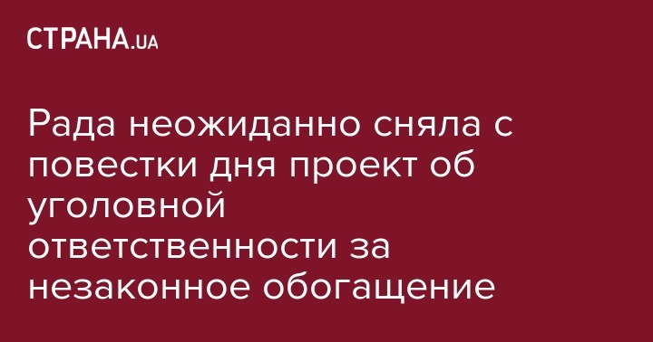 Рада неожиданно сняла с повестки дня проект об уголовной ответственности за незаконное обогащение
