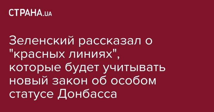 Украинский президент Владимир Зеленский заявил, что новый закон об особом статусе Донбасса, который должны принять после завершения действия нынешнего закона в конце 2019 года, будет учитывать "красные линии" и общественное мнение в Украине.