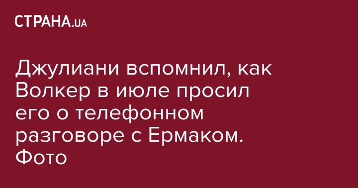 Адвокат американского президента Дональда Трампа Рудольф Джулиани заявил, что ушедший в отставку спецпредставитель госдепартамента США по Украине Курт Волкер обращался к нему в середине июля с вопросом, готов ли Джулиани поговорить с помощником президента Украины Владимира Зеленского Андреем Ермаком. Об этом он написал на своей странице в Твиттере.