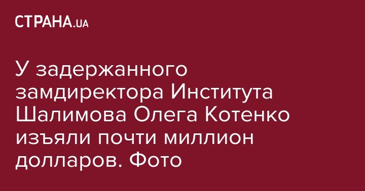 У задержанного замдиректора Института Шалимова Олега Котенко изъяли почти миллион долларов. Фото