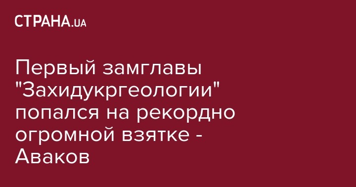 На Львовщине при получении взятки в размере 1,5 млн грн задержан первый заместитель госпредприятия "Захидукргеология" (НАК "Надра Украины"). Об этом на своей странице в социальной сети Facebook сообщил министр внутренних дел Арсен Аваков.