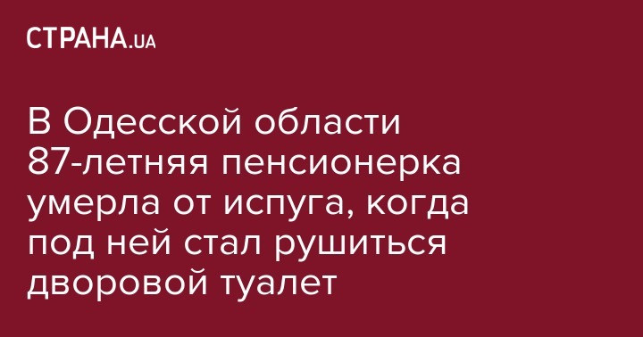 В городе Рени Одесской области пенсионерка умерла от страха, когда под ней стал рушиться дворовой туалет. Об этом сообщает "Рени-Одесса".
