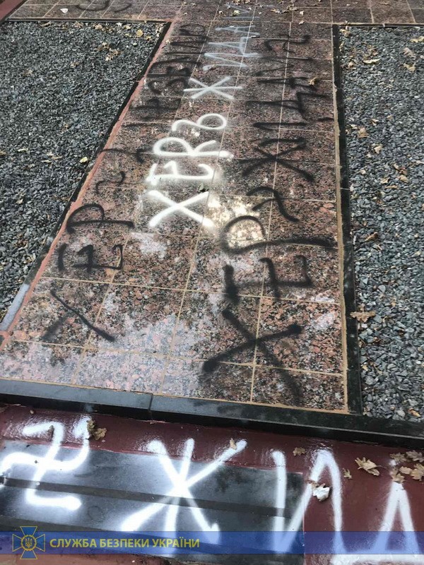 Злоумышленник нанес краской изображение нацистской свастики и антисемитские надписи на мемориальном комплексе, построенном на месте казни нацистами более девятисот евреев во времена Второй мировой войны. Им оказался киевлянин, который является фанатичным сторонником свастик и рун, которые использовались нацистами.