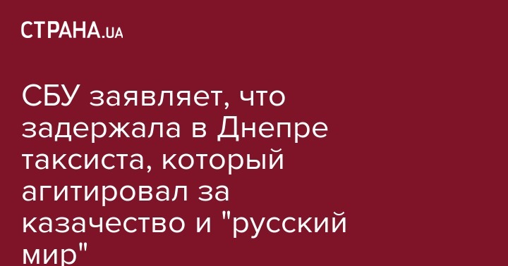 Сотрудники Службы безопасности Украины задержали таксиста из Днепра, который, как утверждают в спецслужбе, позиционировал себя как сторонник "российского казачества", русской православной церкви и монархизма и агитировал за "русский мир".