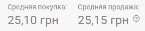 В обменках по состоянию на 08:00 средняя покупка 25,07 грн, средняя продажа - 25,15 грн.