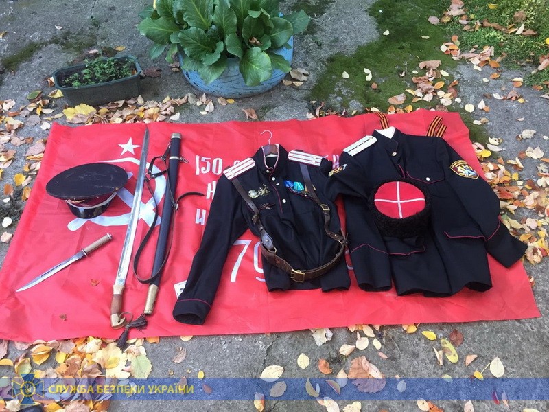 Во время обысков правоохранители обнаружили и изъяли коммунистическую символику, георгиевские ленты, средства связи и компьютерную технику.