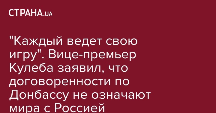 "Каждый ведет свою игру". Вице-премьер Кулеба заявил, что договоренности по Донбассу не означают мира с Россией