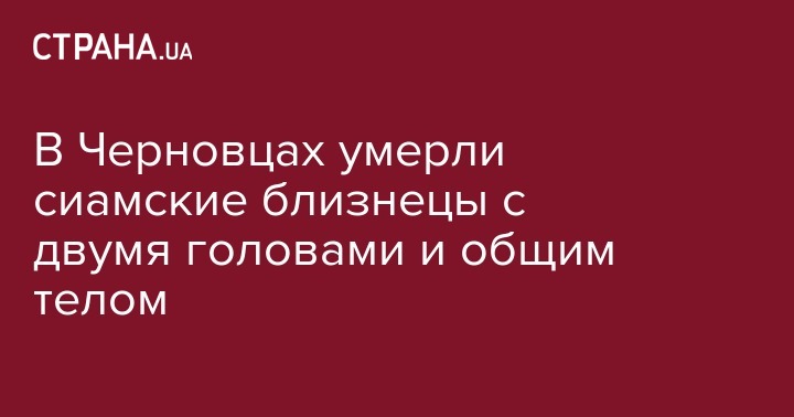 В Черновцах в областной детской клинической больнице скончались сиамские близнецы, появившиеся на свет в ночь на 28 сентября в городском роддоме №2. Об этом со ссылкой на сотрудников областного медицинского учреждения сообщает УНИАН.