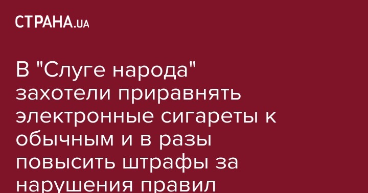 Депутаты фракции "Слуга народа" Вячеслав Медяник и Владлен Неклюдов предлагают ограничить употребление, реализацию и рекламу электронных сигарет и устройств для электрического нагрева табака наравне с обычными табачными изделиями. Соответствующий законопроект №2199 от 2 октября "О внесении изменений в некоторые законодательные акты Украины относительно усиления ответственности за правонарушения в сфере оборота и употребления табачных изделий" обнародован на сайте парламента.