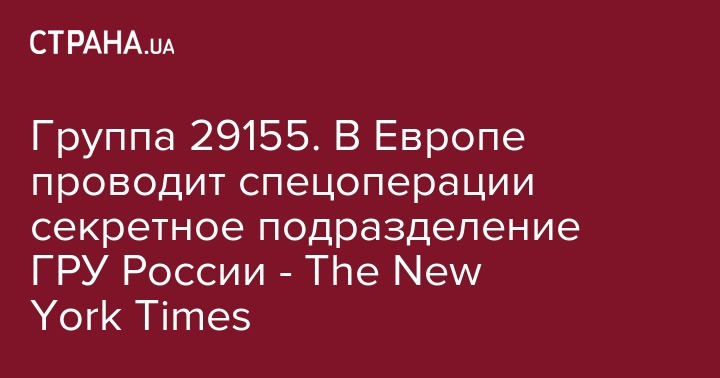 Речь идет о подразделении 29155 Главного разведывательного управления РФ (ГРУ, с 2010 года - Главное управление Генерального штаба РФ), передает газета The New York Times со ссылкой на сотрудников разведки в четырех западных странах.