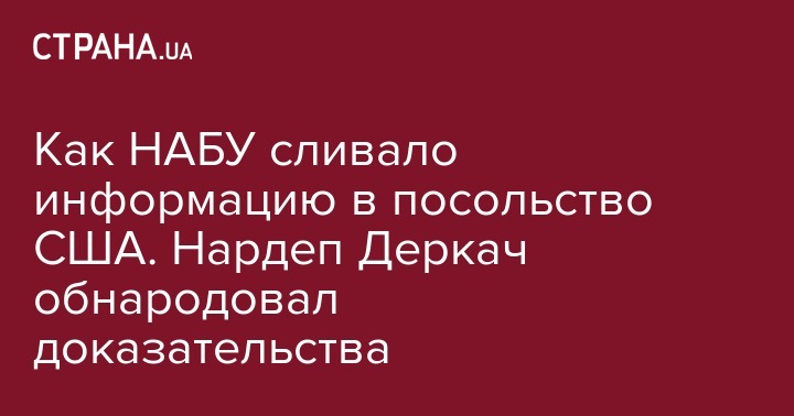 "Как свидетельствуют материалы переписки, неоднократно, начиная с 14 июля 2017 года с электронного почтового ящика помощницы первого зама НАБУ Гизо Углавы Полины Чиж на адрес специалиста по правовым вопросам программы борьбы с коррупцией Департамента юстиции США посольства США в Украине Анны Емельяновой пересылались перечни криминальных производств, которыми занимаются детективы НАБУ", - сказал Деркач.