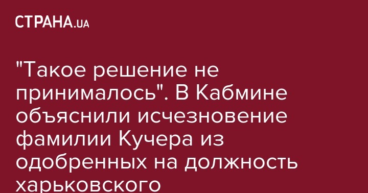 Напомним, что сегодня из сообщения Кабмина исчезло одобрение Кучера на должность главы Харьковской ОГА.