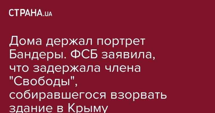 Дома держал портрет Бандеры. ФСБ заявила, что задержала члена "Свободы", собиравшегося взорвать здание в Крыму