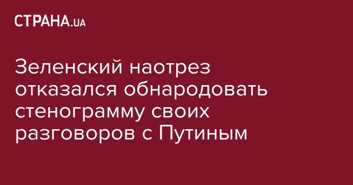Зеленский наотрез отказался обнародовать стенограмму своих разговоров с Путиным