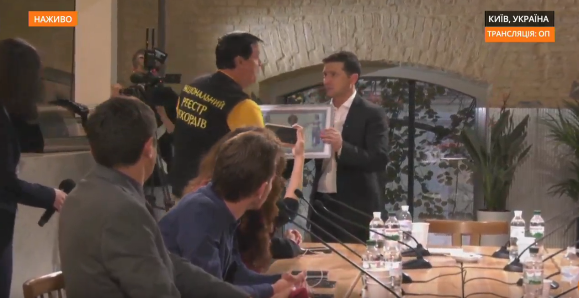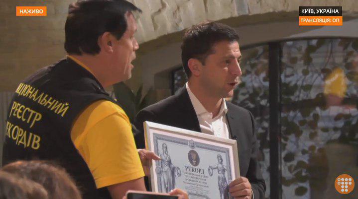 Перед камеры вышел представитель Национального реестра рекордов и сказал, что Зеленский установил новую планку по длительности общения с перссой.