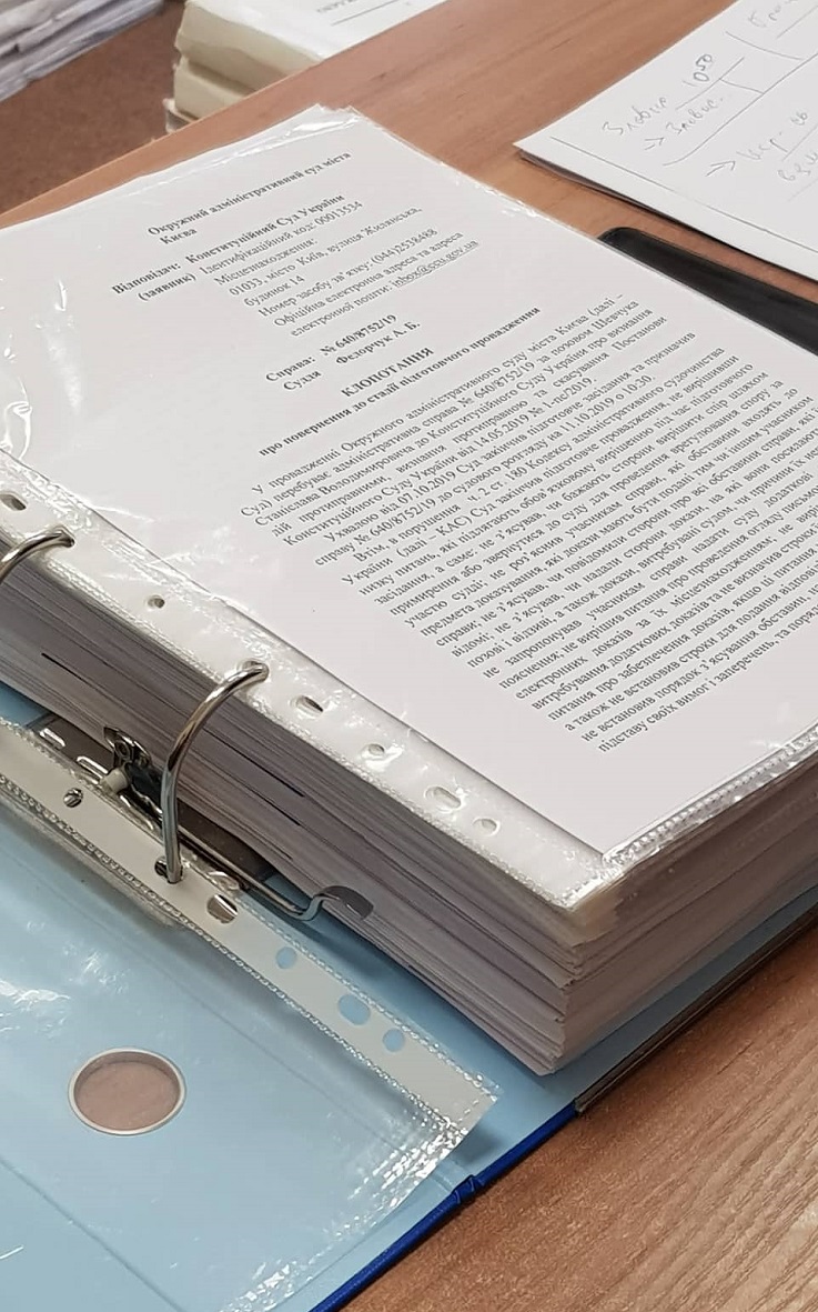 Напомним, что судья рассматривает дело о восстановлении Шевчука в должности главы Конституционного суда под грудой бумаг.