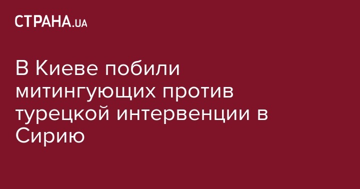 В Киеве на улице Панаса Мирного перед посольством Турции в Украине во время акции протеста против проведения турецкой военной интервенции против курдов на севере Сирии неизвестные напали на протестующих и побили их. Об этом сообщила участница акции София Лапина на своей странице в Facebook в пятницу днем. Девушка опубликовала видеозапись проведения протеста и самого инцидента.