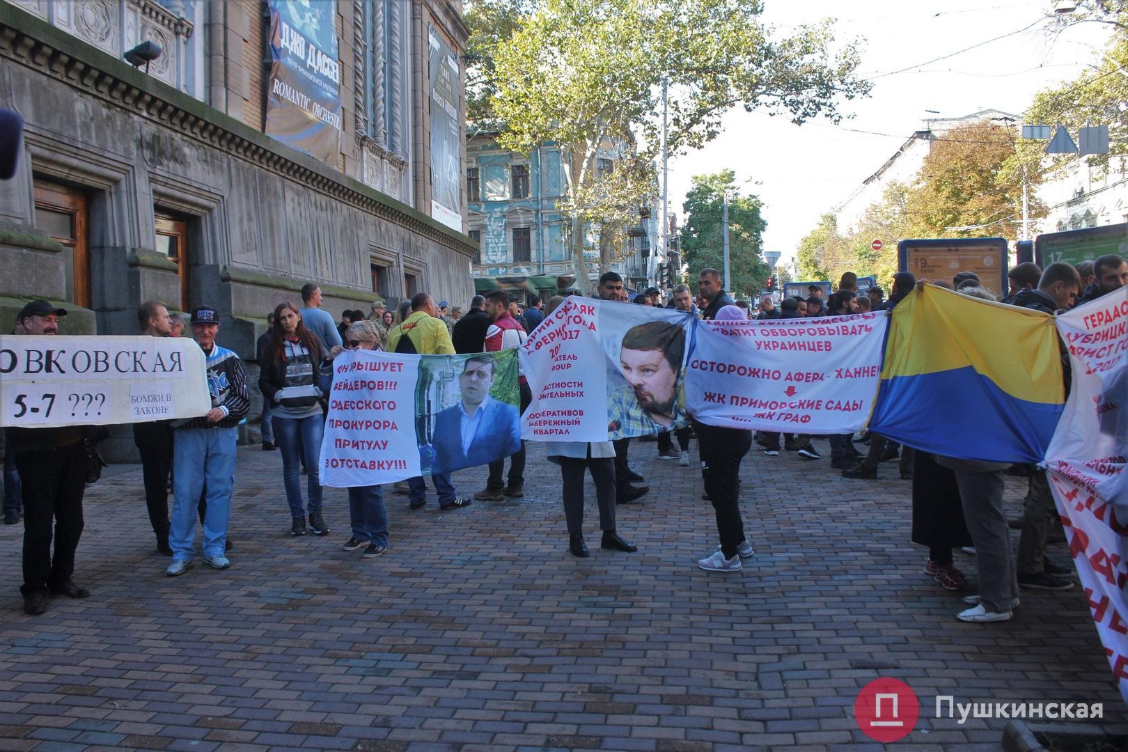 11 октября в Одессу приехал президент Украины Владимир Зеленский. Он должен встретиться с журналистами и военными в Одесской филармонии, под входом в которую националисты провели сразу несколько акций протеста. Об этом сообщает "Пушкинская".