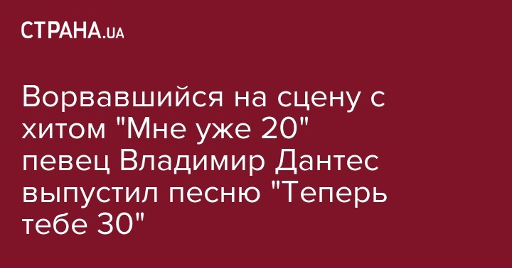 Ворвавшийся на сцену с хитом "Мне уже 20" певец Владимир Дантес выпустил песню "Теперь тебе 30"