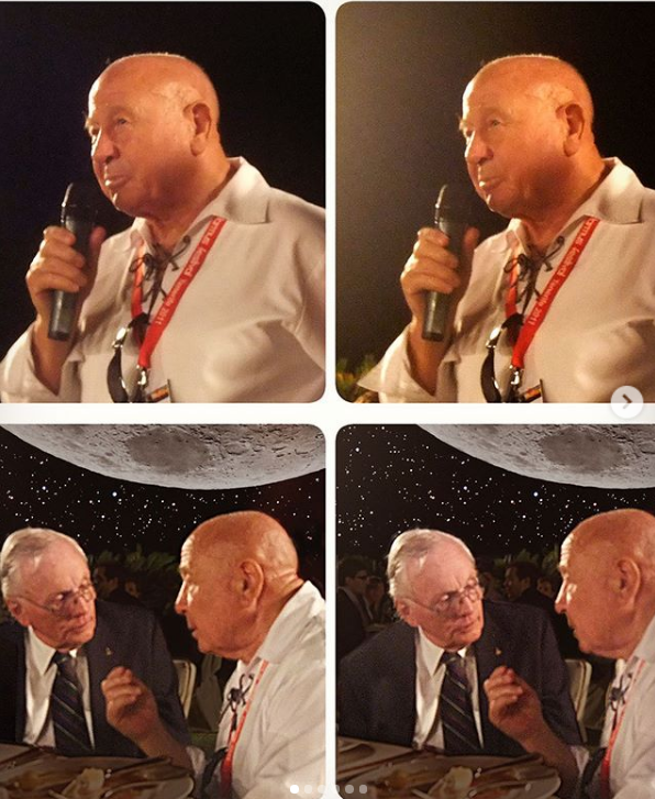 "Здесь вы видите его через линзы моей собственной камеры, во время выступления на STARMUS и беседы с Нилом Армстронгом - покорителем Луны", - написал Мэй.