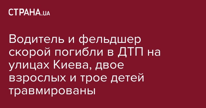 В результате дорожно-транспортного происшествия, с участием кареты скорой помощи, в воскресенье вечером в Киеве погиб водитель скорой и фельдшер, а также пострадали пять человек, из них трое детей, сообщает dtp.kiev.ua.