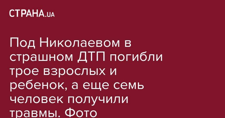 Четыре человека погибли в результате ДТП, которое произошло в Николаевской области. В числе погибших - семилетняя девочка. Также семь человек получили травмы и доставлены в больницу. Об этом сообщается на сайте регионального ГУ НП.