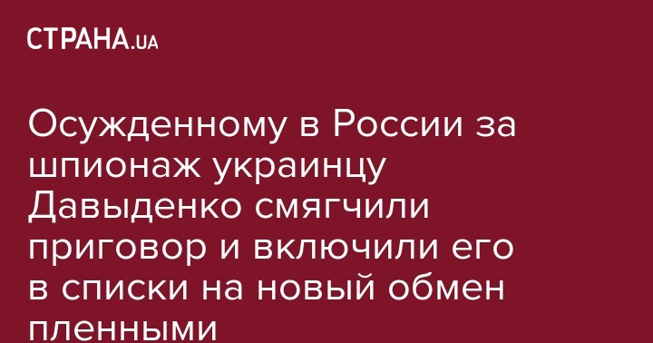 Верховный суд РФ уменьшил срок наказания гражданину Украины Константину Давыденко, осужденному за шпионаж в пользу украинских спецслужб. Кроме того, украинца внесли в списки на обмен пленными между Россией и Украиной. Об этом сообщает "Интерфакс".