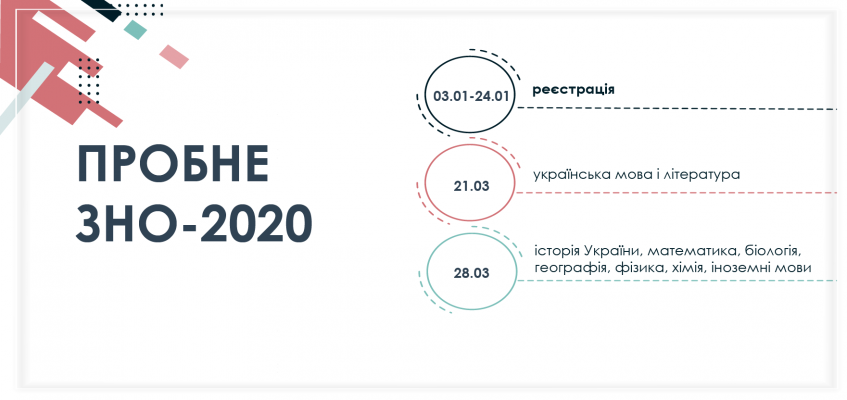 Регистрация на пробное ВНО-2020 стартует 3 января и завершится 24 января. Сдать пробное тестирование по украинскому языку и литературе абитуриенты смогут 21 марта, а пробное ВНО по математике, истории Украины, биологии, географии, физике, химии и иностранным языкам состоится 28 марта 2020 года.