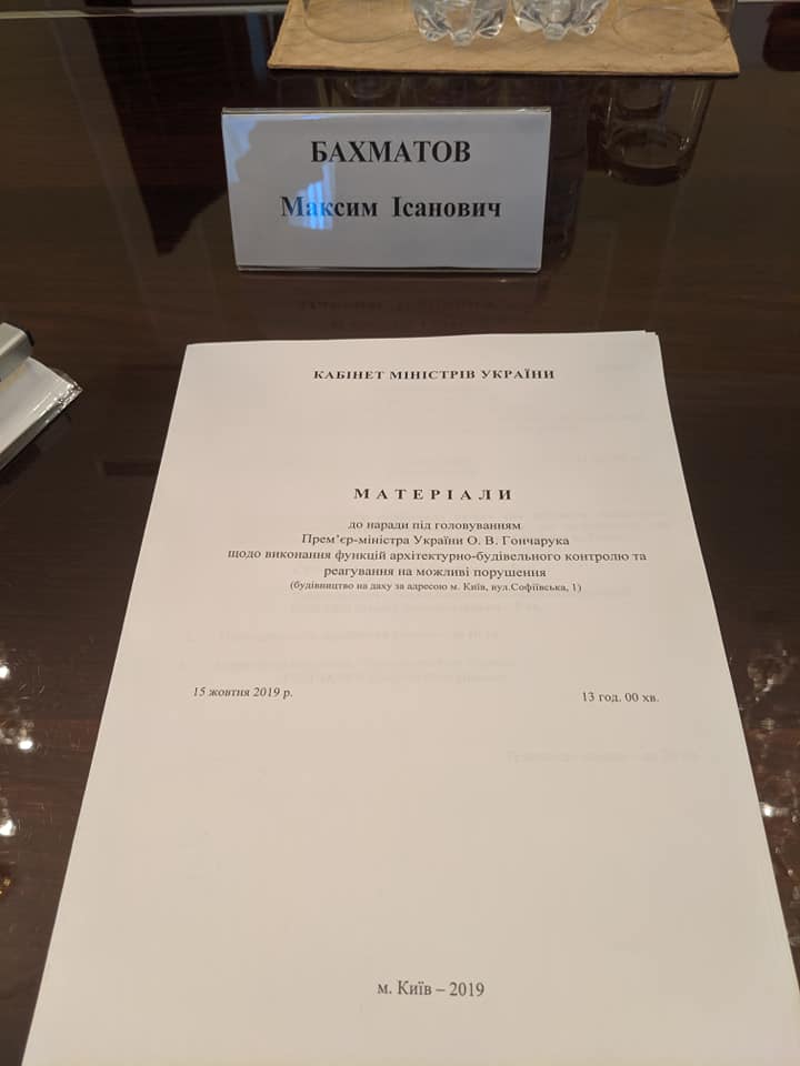 Во вторник, 15 октября, в Кабинете министров прошло заседание по поводу борьбы с незаконными застройками. Об этом в Facebook написал советник киевского городского головы Максим Бахматов.