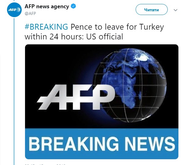 "Пенс отправится в Турцию в течение 24 часов", - отмечается в сообщении.