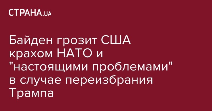 "Если он (Дональд Трамп - Ред.) будет переизбран, я обещаю вам, не будет никакого НАТО... У нас будут настоящие проблемы", - сказал господин Байден, выступая на дебатах кандидатов в президенты от демократов.
