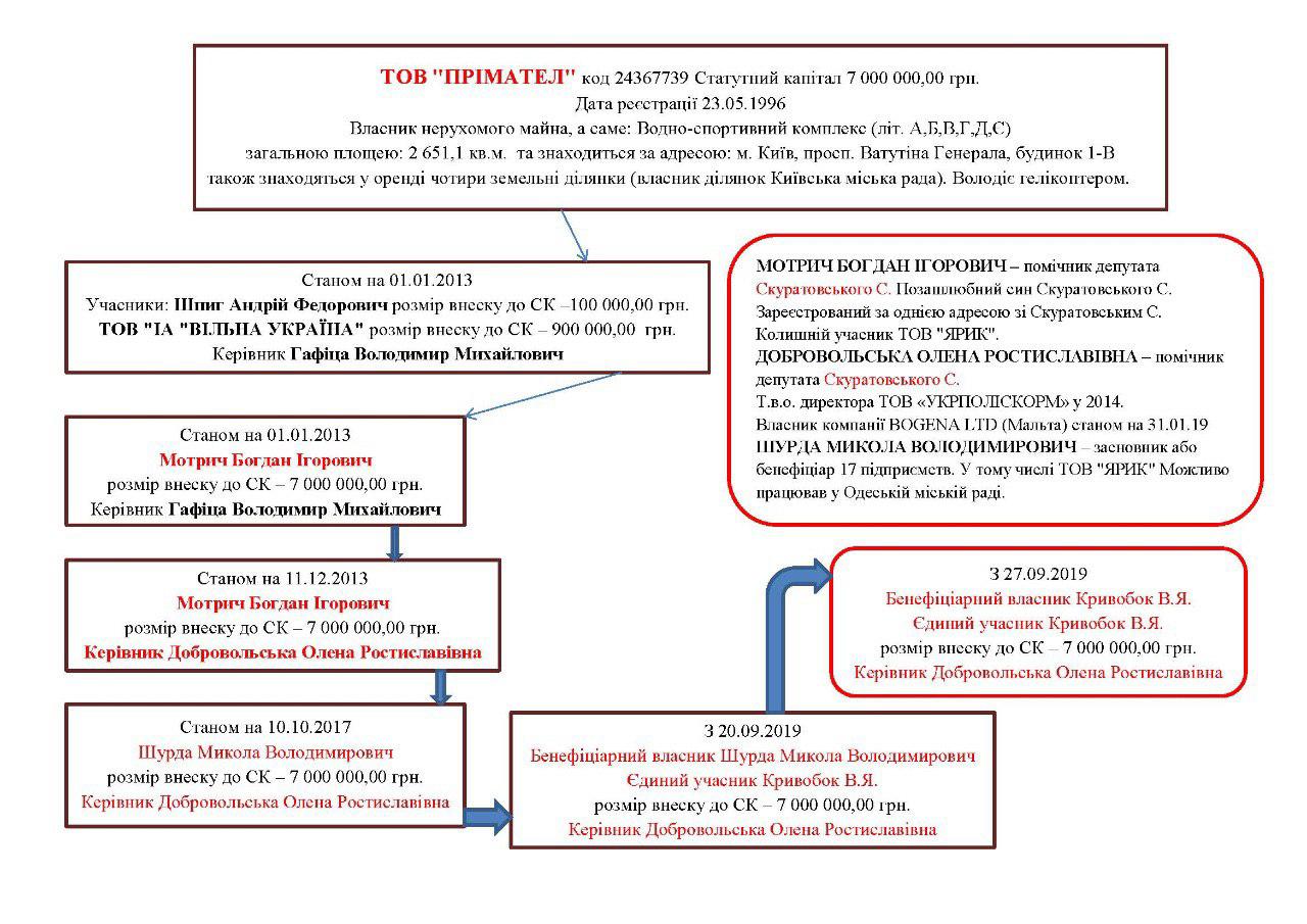 Интересно, что после объявления "пидозры" и бегства Скуратовского (он сейчас в розыске), новым владельцем фирмы "Примател" 20 сентября 2019 года - то есть уже при новом генпрокуроре Рябошапке - стал отец прокурора Кривобока. А директором осталась Елена Добровольская - которая была помощницей депутата Скуратовского.