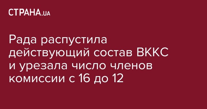 Верховная Рада распустила действующий состав Высшей квалификационной комиссии судей (ВККС) и сократила количество ее членов с 16 до 12. За принятие в целом законопроекта №1008 проголосовали 236 депутатов при минимально необходимых 226. Об этом сообщают "Украинские новости".